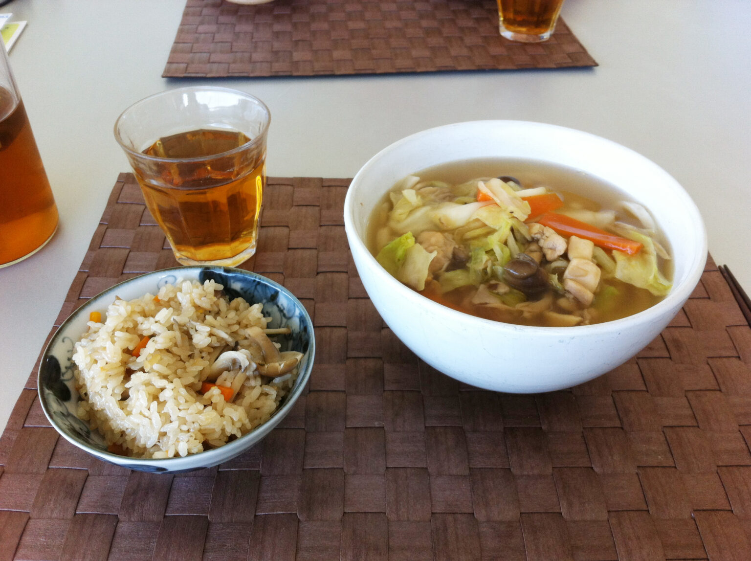 「なんちゃって松茸ご飯と野菜たっぷりうどん」にしました。