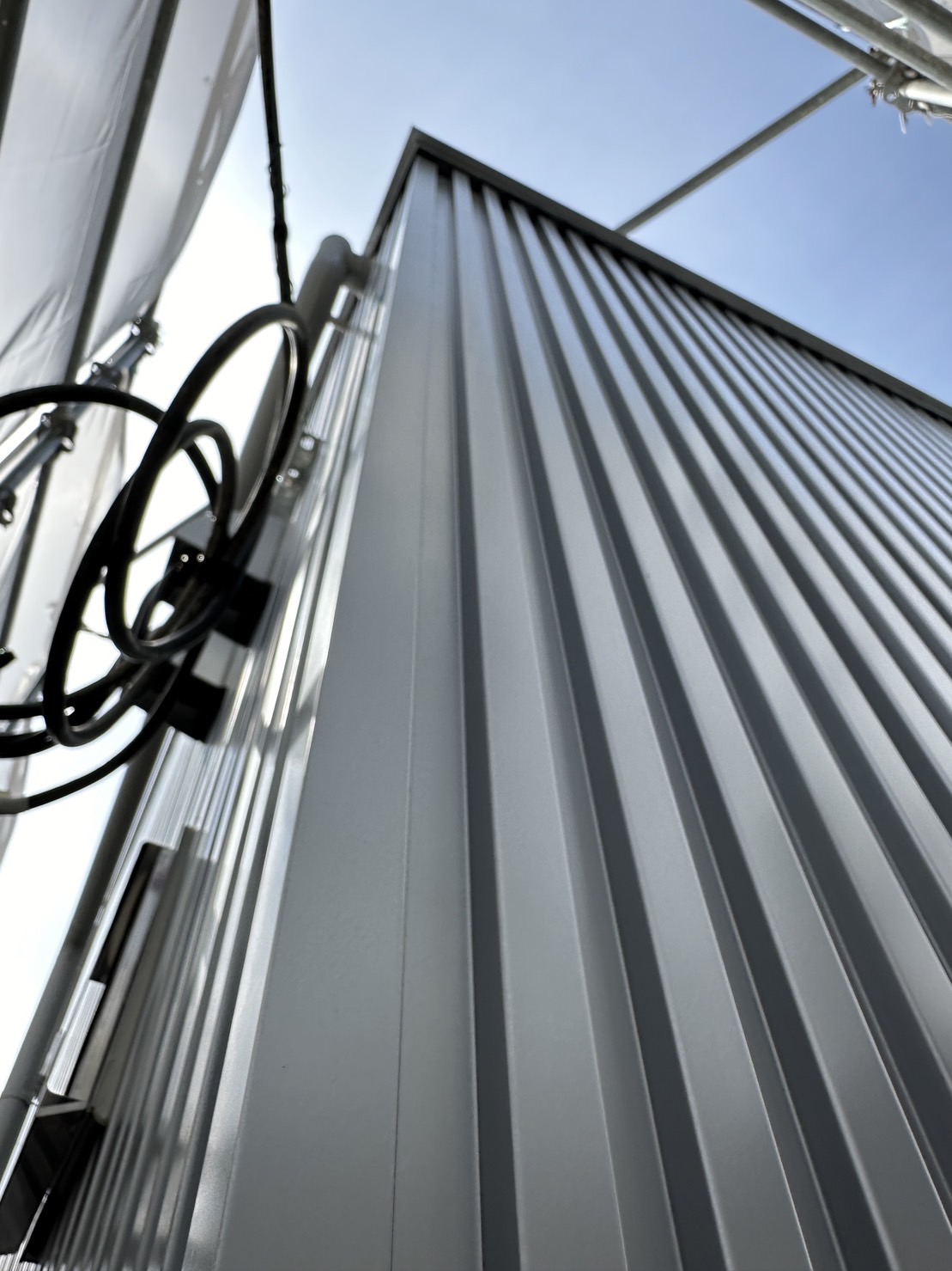 外壁はもちろん、室内にもガルバリウム鋼板の「K型スパンドレル」という凹凸がついた金属板で仕上げています。
