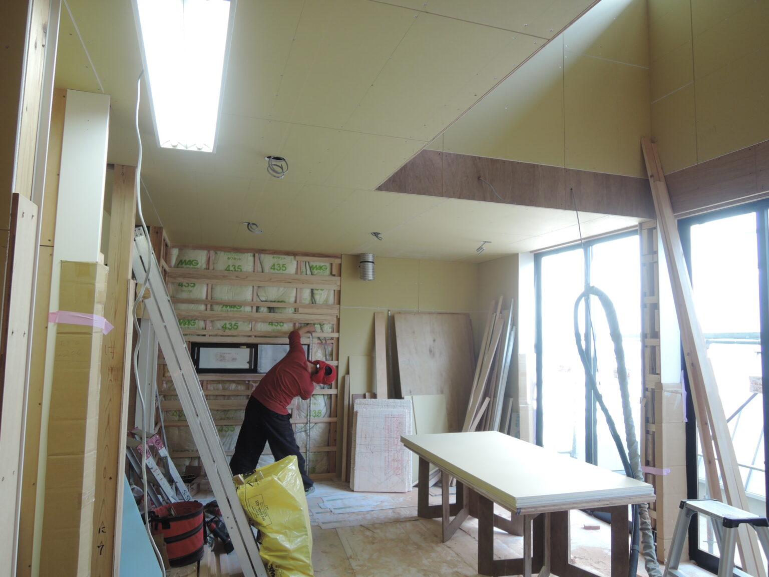 内部のボード貼りもほぼ終わり、外部足場のばらしも