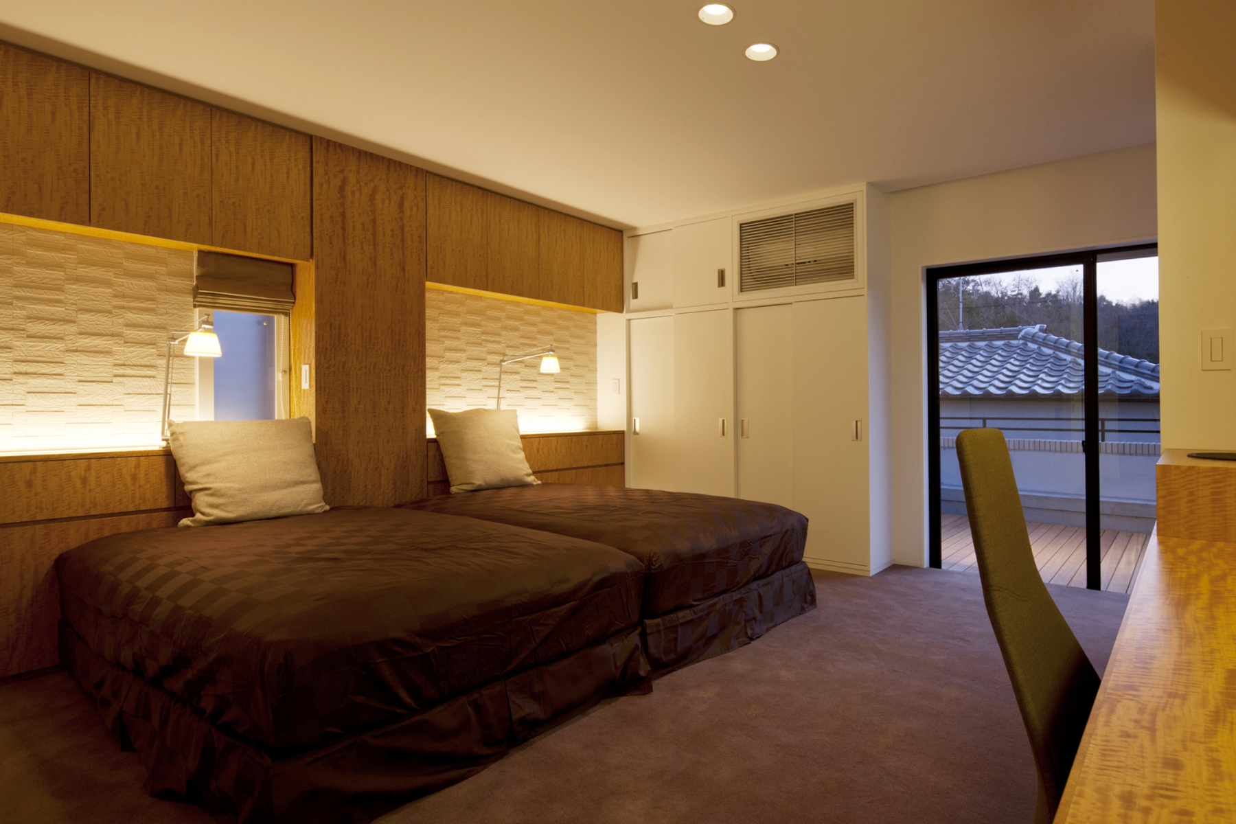 ご要望にあった「ホテルのようなインテリア」にするため、作り付けの収納を多く作り、スッキリと片付くようにしています。