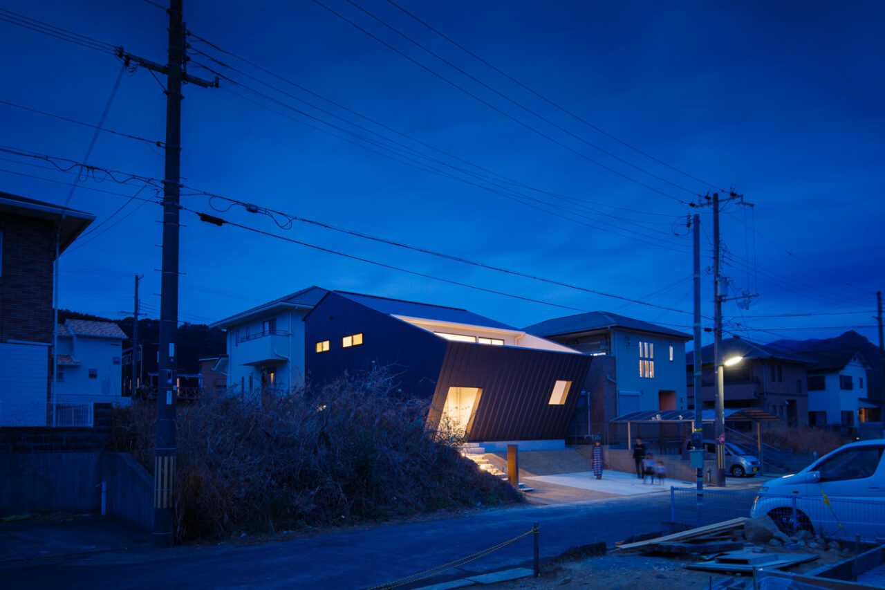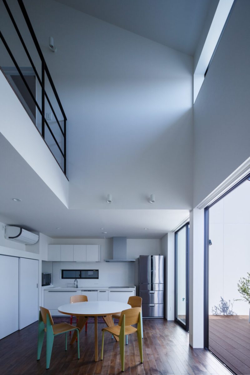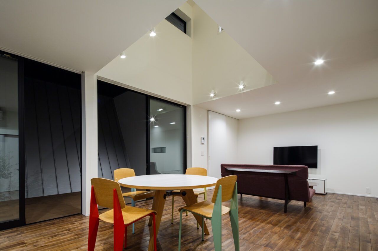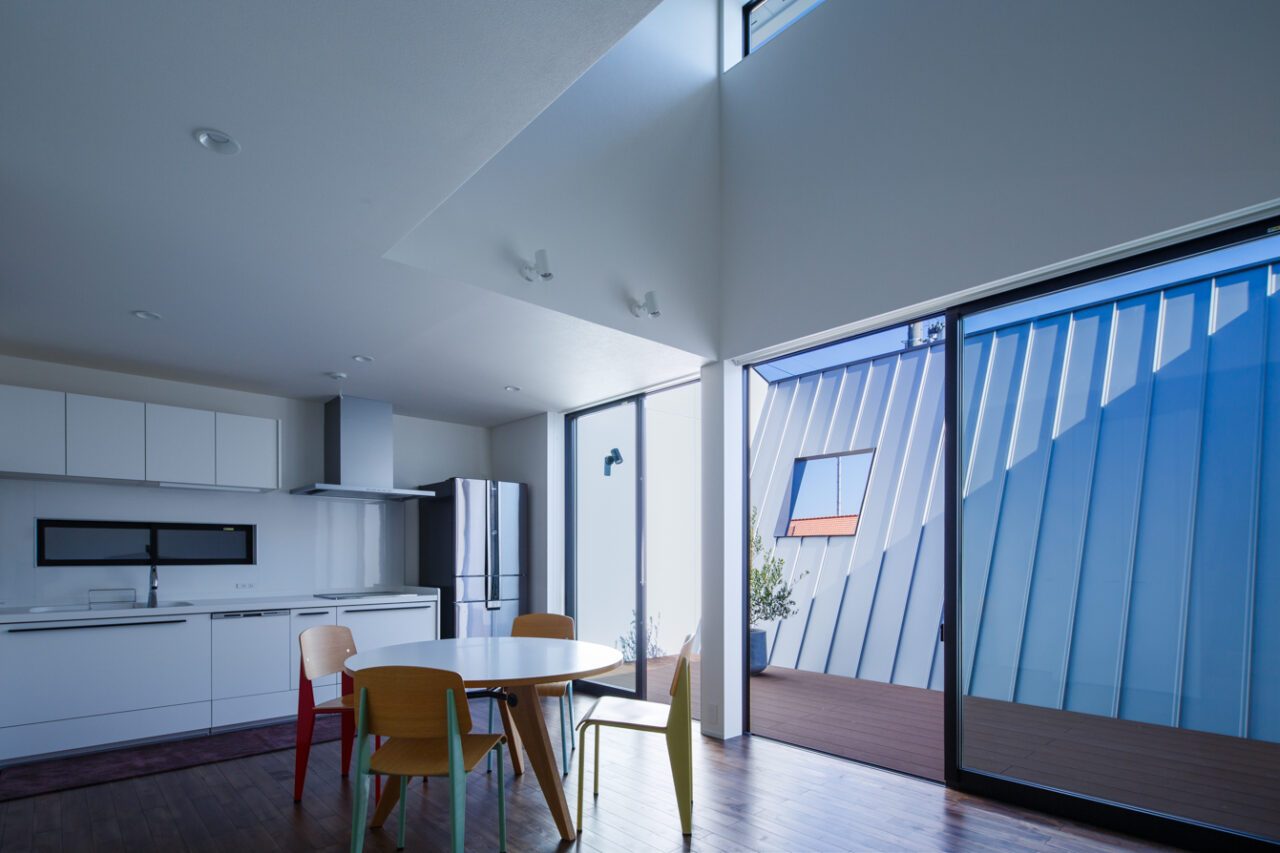 2.採光は将来的に不確定な南側よりも、道路側の開けた東側に中庭を設けて取り入れること。さらに明るさを確保するため、中庭の壁は「斜め」にすることで南の光をより多く集め、 反射板として利用すること。