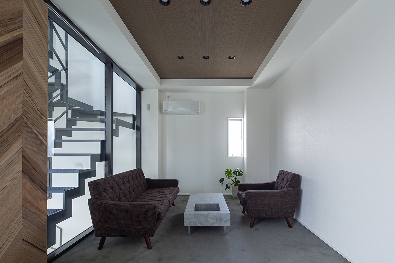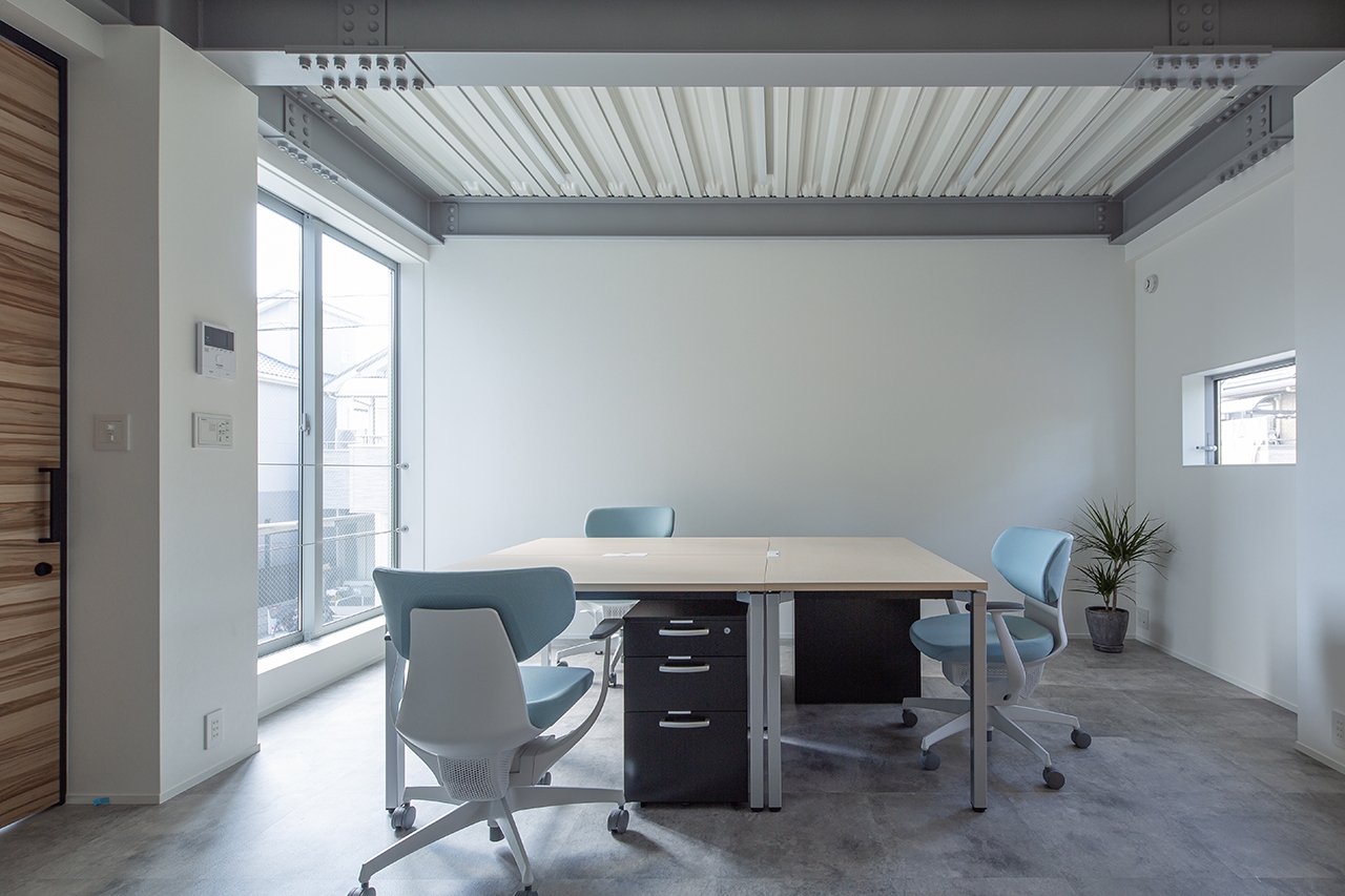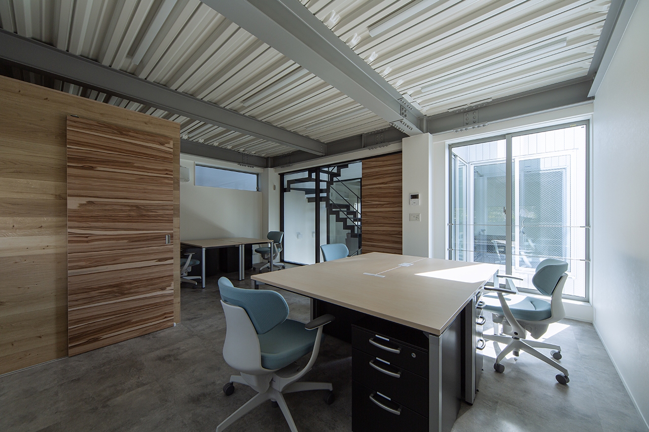 依頼者が偶然シンクスタジオの建物の前を通りがかり、同じようなオフィスを建てたいとご依頼頂いた物件です。