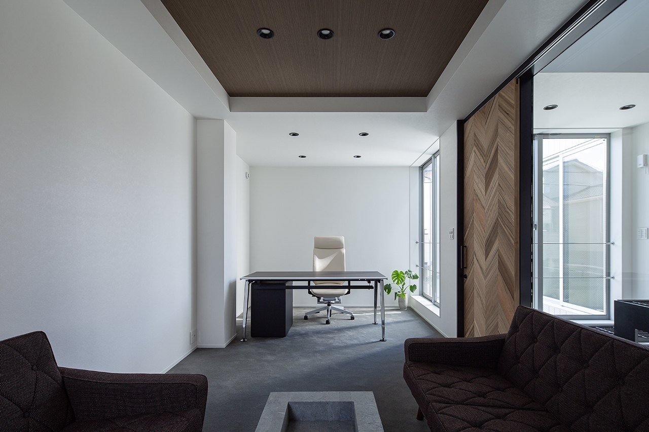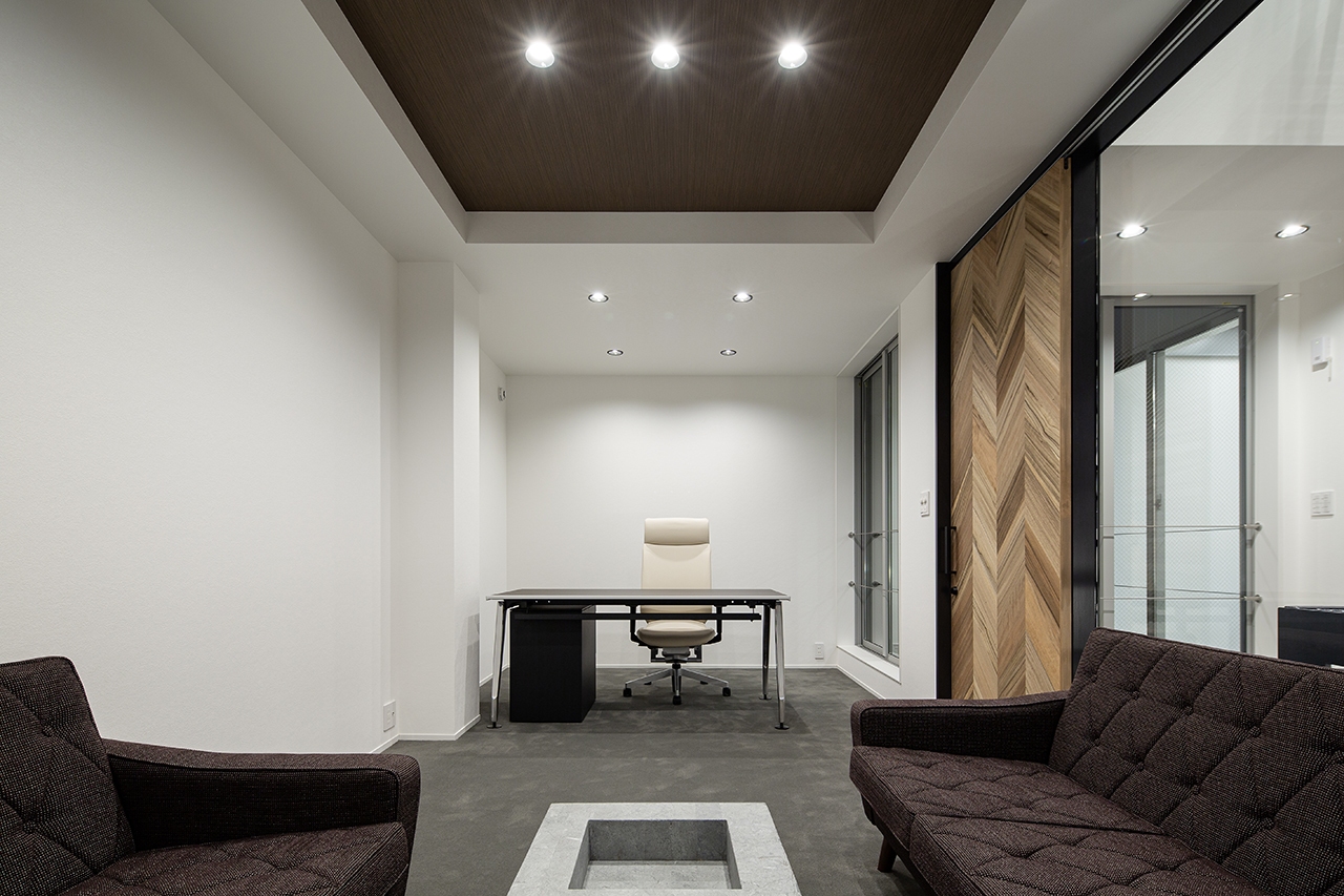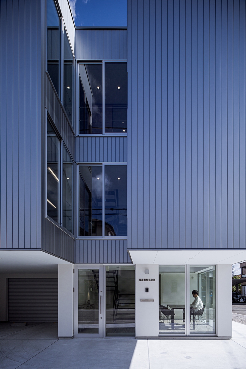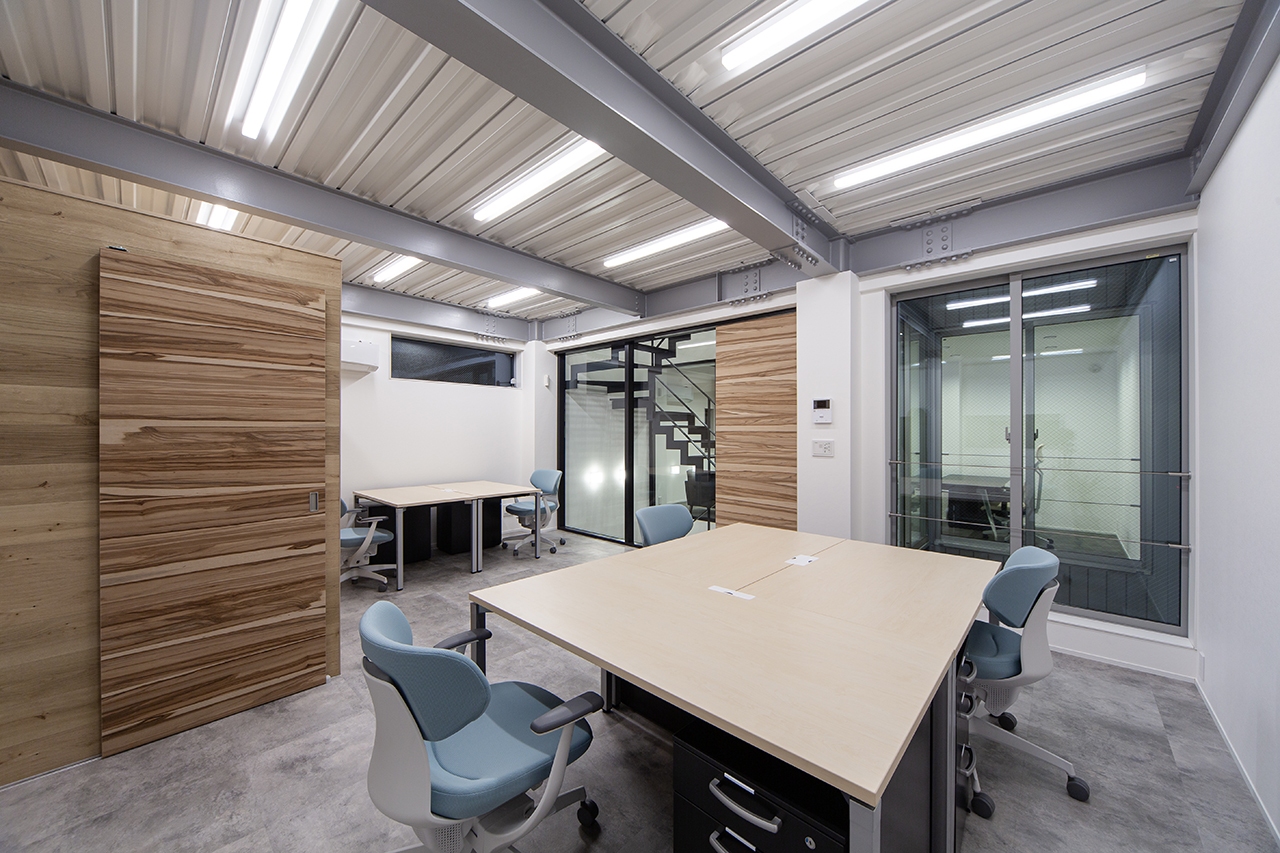 依頼者が偶然シンクスタジオの建物の前を通りがかり、同じようなオフィスを建てたいとご依頼頂いた物件です。
