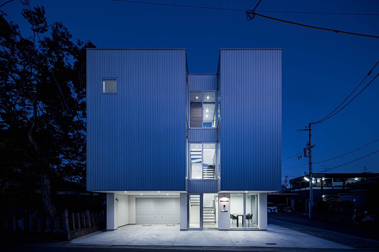 2、3Fは道路側からの住宅街からの視線と西日に配慮し、西側外壁に「コの字」の吹抜を設けることで、